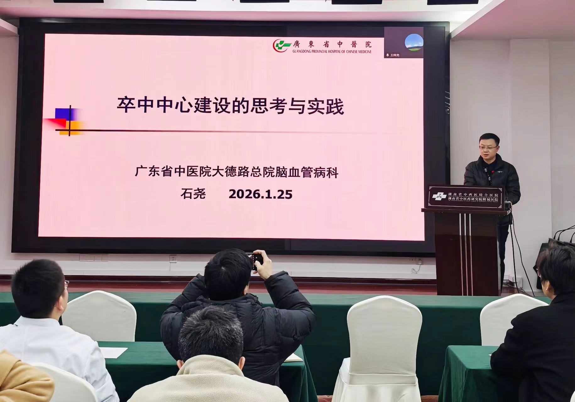 1月25日下午,由湖南省中西医结合医院(湖南省中医药研究院附属医院)脑病科举办的第七期“湖湘脑病论坛”在内科楼五楼多功能厅举行。本期论坛以“卒中中心建设的思考与实践”为主题,邀请广东省中医院大德路总院脑血管病科病区组长、国家卫健委神经介入培训中心广东省中医院基地秘书、广东省临床医学会介入神经病学专委会委员石尧教授做专题授课,为湖南卒中中心建设带来宝贵经验。论坛由医院脑病科主任谢乐主持,医院相关科室骨干、研究生及多部门代表参与交流研讨。