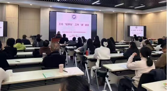 针对高校教师常见的颈肩腰腿不适等问题,欧严结合典型实例,生动讲解如何在工作中运用中医知识进行自我调节与保健,并现场示范了几个便于自我操作的穴位按压方法,带领大家学习简单易行的“耳部操”,现场互动积极,气氛活跃。