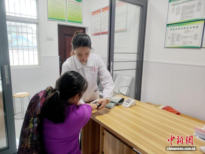 乡村医生杨理在给村民量血压。 宋干敉 摄